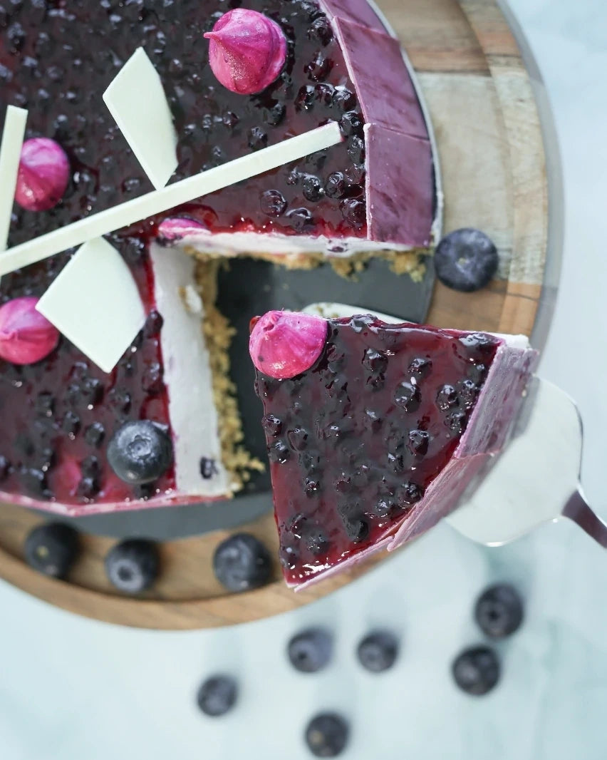 Sinfully rich & velvety smooth cheesecake made with finest of cream cheese, fresh cream, biscuit base & glazed with blueberry sauce.