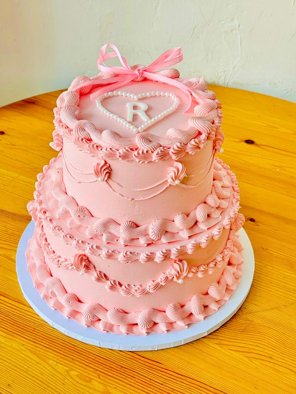 Vintage theme cake in Pink colour, prepared in buttercream!