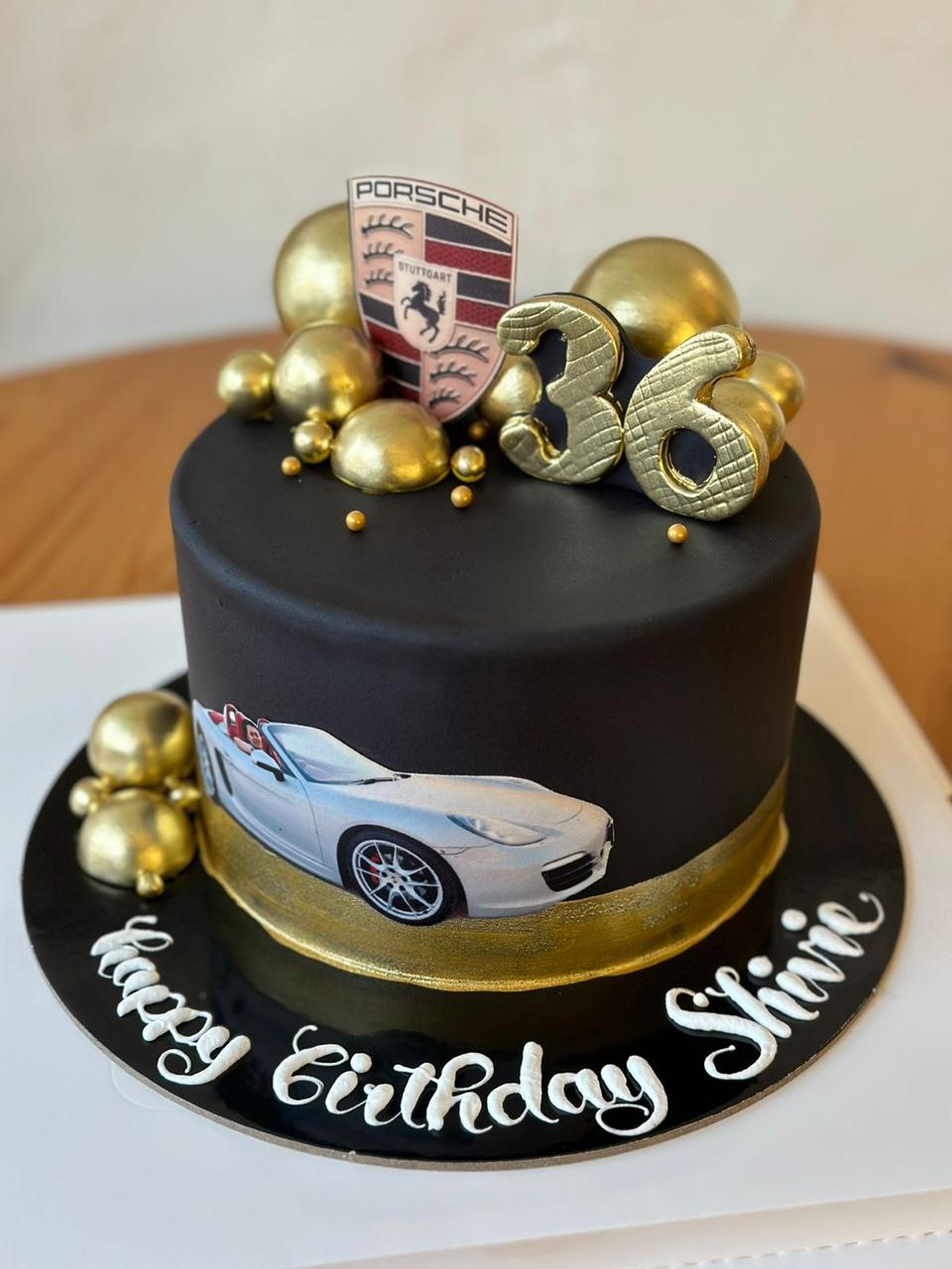 Sharp, sleek, and full of impactβthis black and gold cake is designed for celebrations with a modern, masculine edge.
