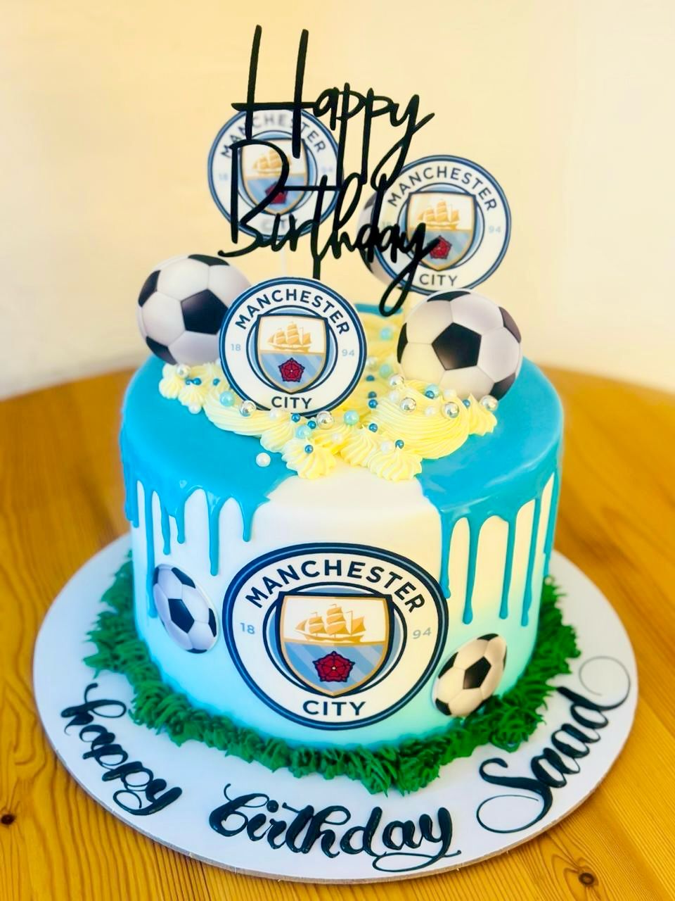 Celebrate like a true Cityzen with this Manchester City-themed buttercream cake! Decorated in the clubβs iconic sky blue and white, and featuring football prints, and smooth buttercream detailingβit's the perfect centerpiece for any Manchester City fanβs birthday or match-day party."