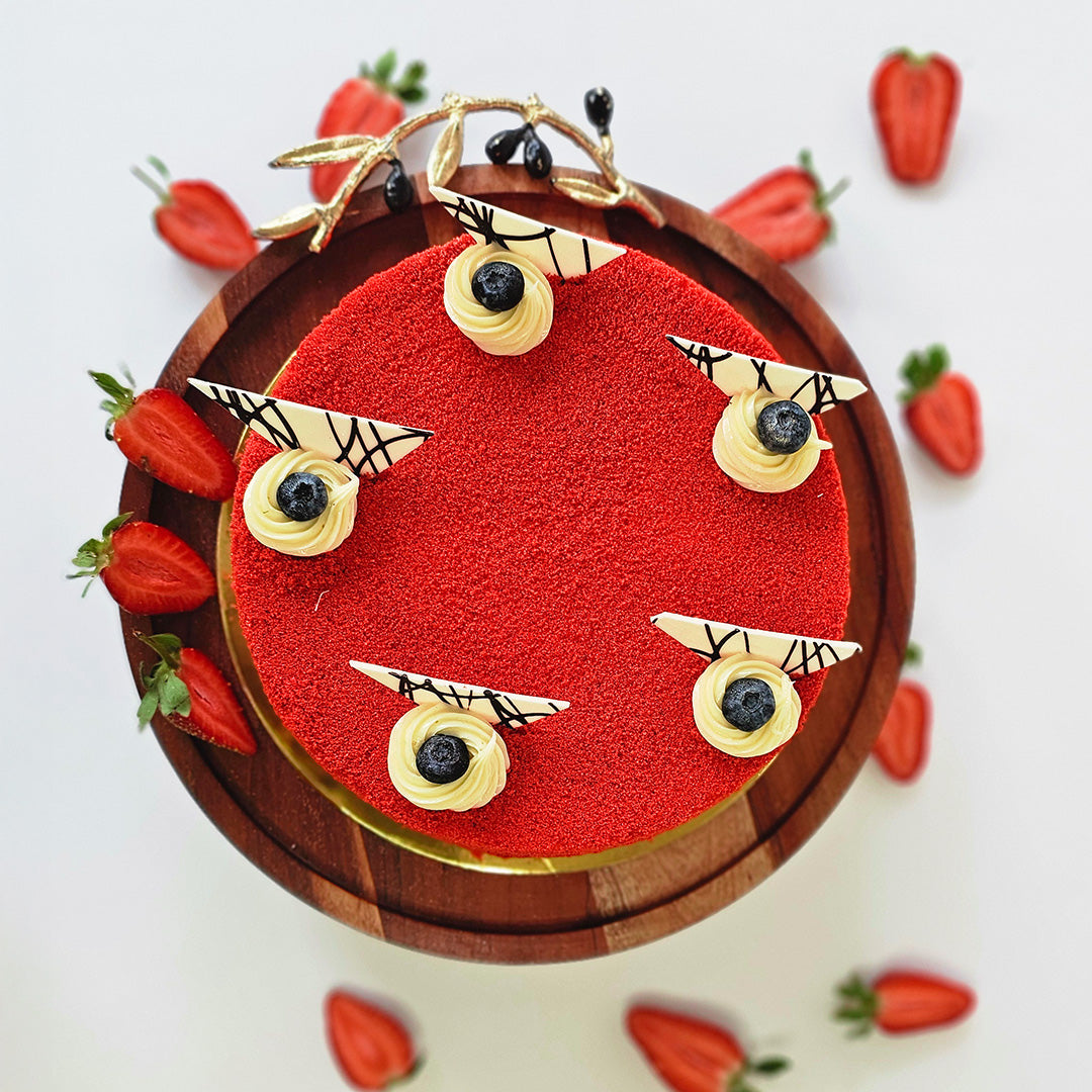 A rich and velvety egg-free red velvet cake with classic cream cheese frosting. Available on pre-order only – perfect for special occasions or dietary needs.